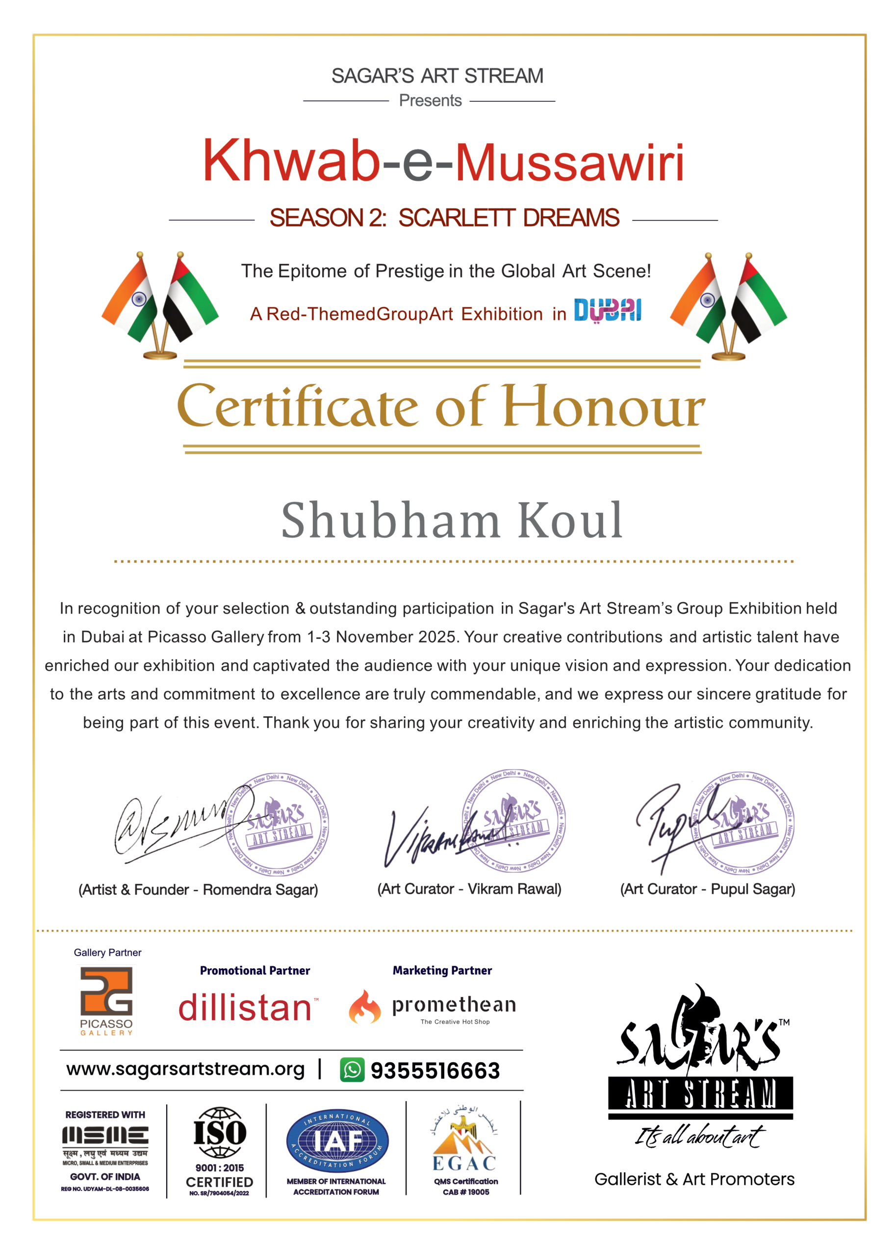 “Shubham —- it’s so wonderful to see you active in the art domain and a matter of pride to be praised by veterans in this field GREAT KEEP IT GOING A BIG GOD BLESS”